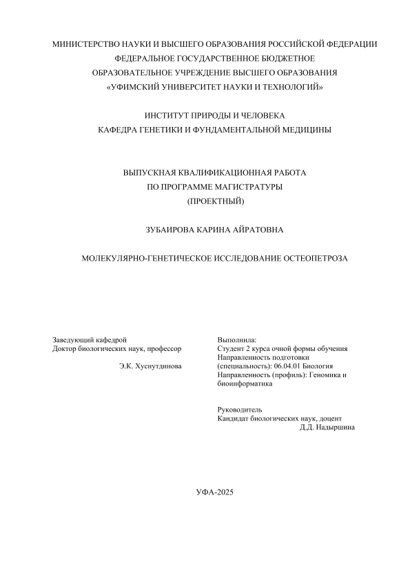 ВКР; магистратура; остеопороз; гены; мутации; секвенирование; молекулярно-генетическое исследование