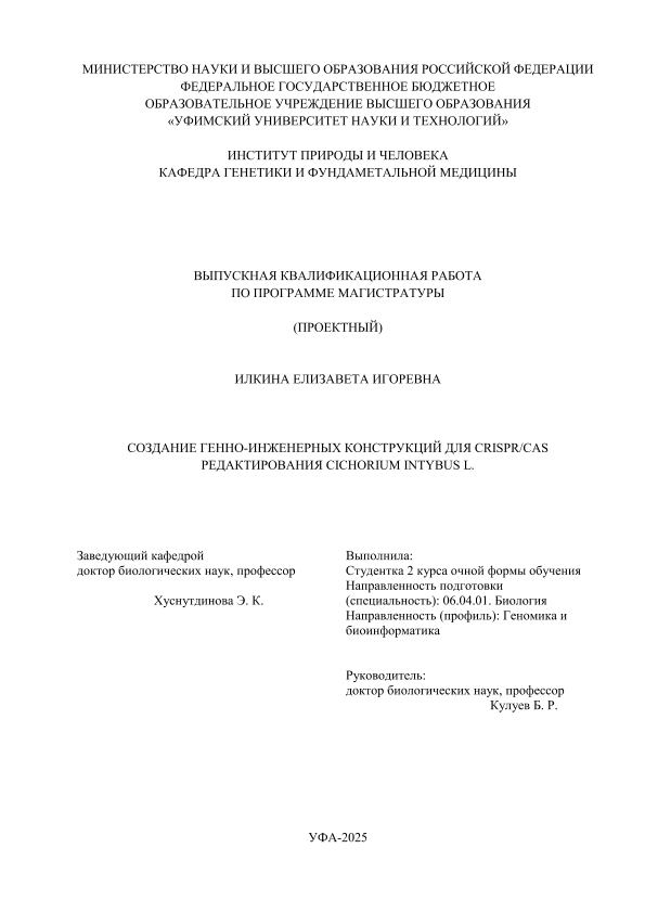 ВКР; магистратура; генно-инженерные конструкции; цикорий обыкновенный; Cichorium intybus L.; CRISPR-конструкции