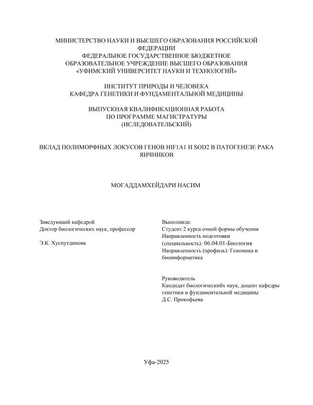 ВКР; магистратура; рак яичников; ген HIF1A1; ген SOD2; полиморфизм
