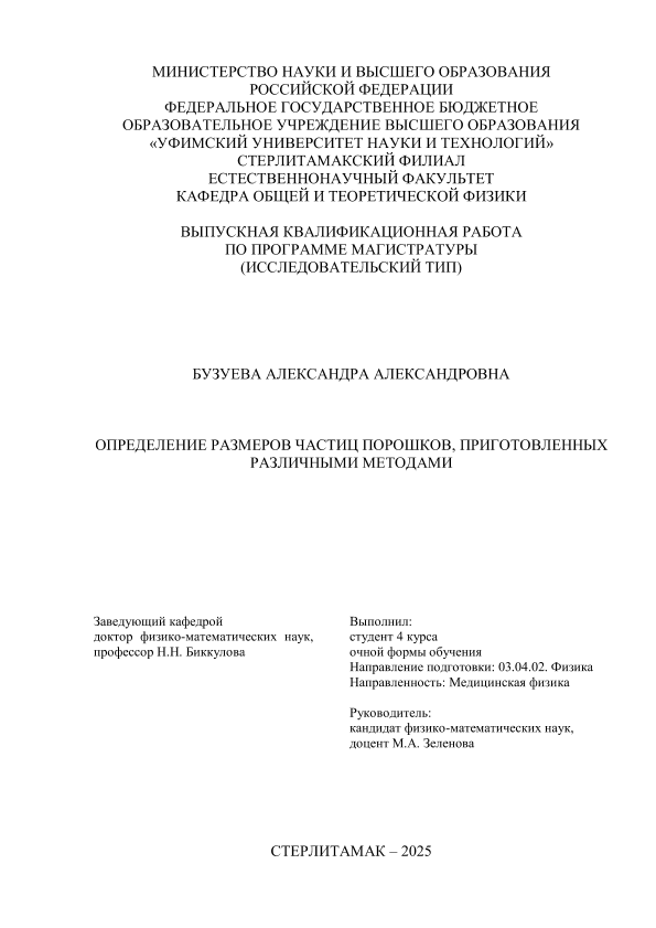 Физика; бакалавриат; ВКР; медицинская физика; порошки