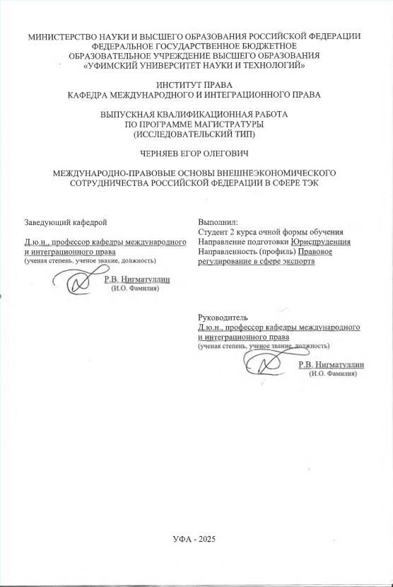 ВКР; магистратура; внешнеэкономическое сотрудничество; правовое регулирование; международное сотрудничество; топливно-энергетический комплекс