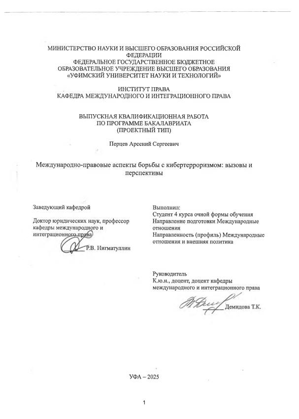ВКР; бакалавриат; международная безопасность; кибертерроризм; международные организации; международное сотрудничество; цифровая трансформация