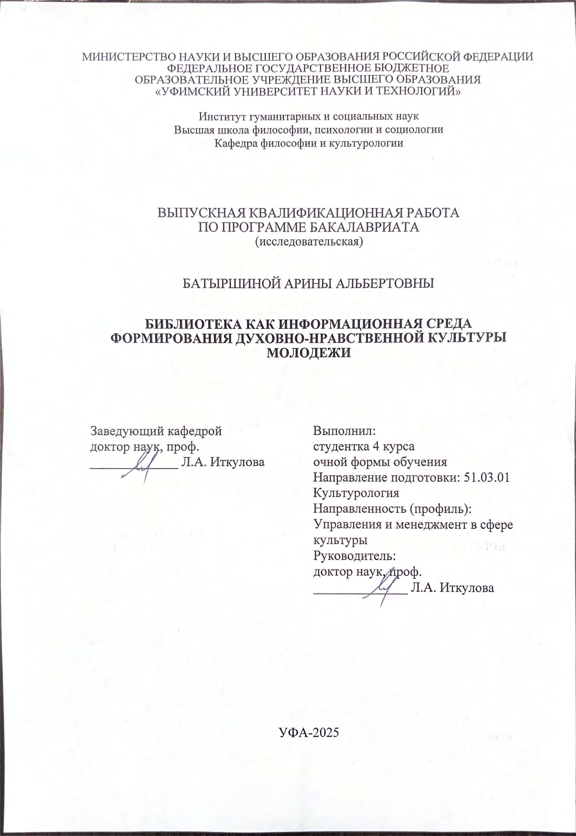 ВКР; бакалавриат; информационная среда; библиотека; духовно-нравственная культура; молодежь; социокультурная деятельность