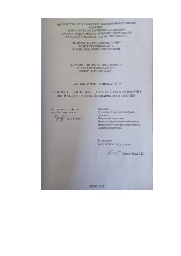 Психология; бакалавриат; ВКР; развития; память; зпр