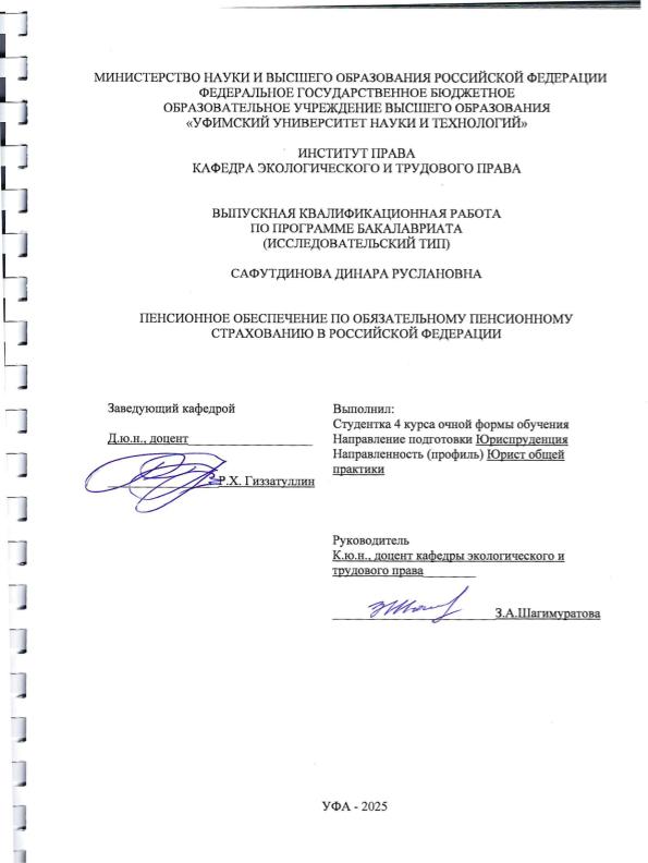 ВКР; бакалавриат; обязательное пенсионное страхование; пенсионное обеспечение; законодательное регулирование; пенсионные выплаты