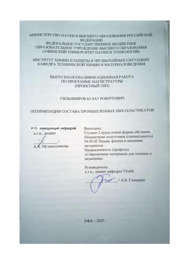 ВКР; магистратура; поливинилхлорид; пластификаторы; приготовление ПВХ-композиций; механохимические стабилизаторы