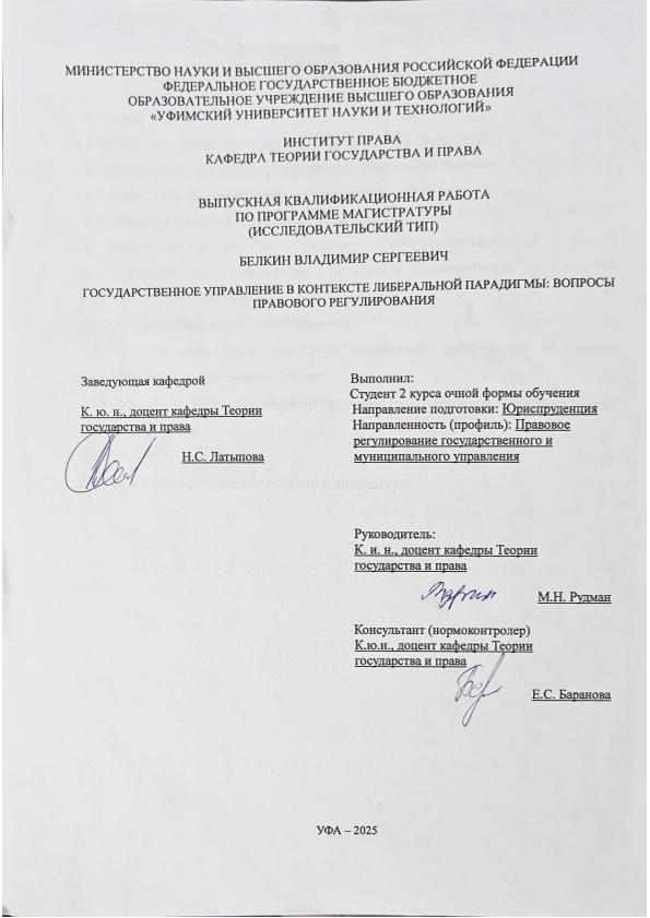 ВКР; магистратура; государственное управление; либерализм; правовое регулирование; конституционное право
