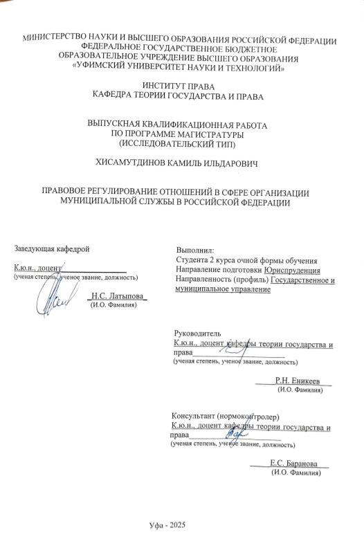 ВКР; магистратура; муниципальная служба; правовое регулирование; кадровая работа; противодействие коррупции
