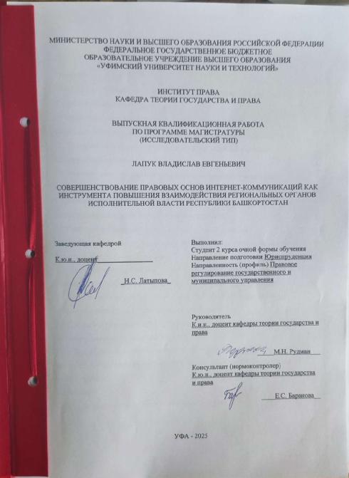 ВКР; магистратура; исполнительная власть; интернет-коммуникации; социальные медиа; правовое регулирование; Республика Башкортостан