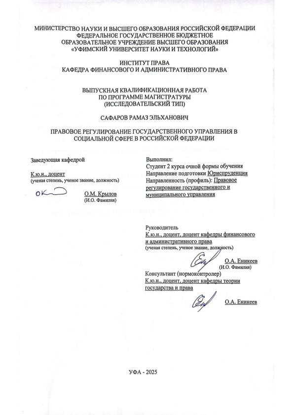 ВКР; магистратура; государственное управление; социальная сфера; правовое регулирование; социальная политика