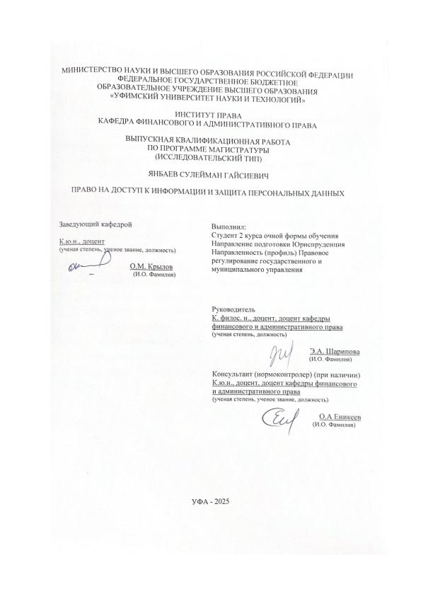 ВКР; магистратура; персональные данные; доступ к информации; правовое регулирование; административная ответственность