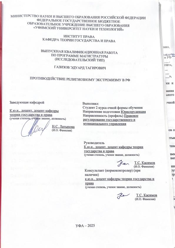 Subjects: ВКР; магистратура; религиозный экстремизм; административно-правовое регулирование; правовые средства