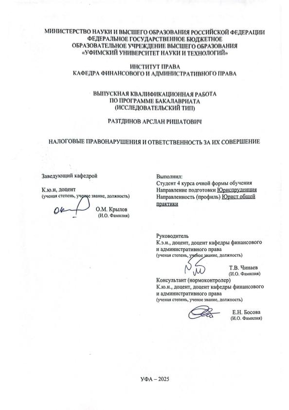 ВКР; бакалавриат; налоговые правонарушения; нормативно-правовое регулирование; правоприменительная практика