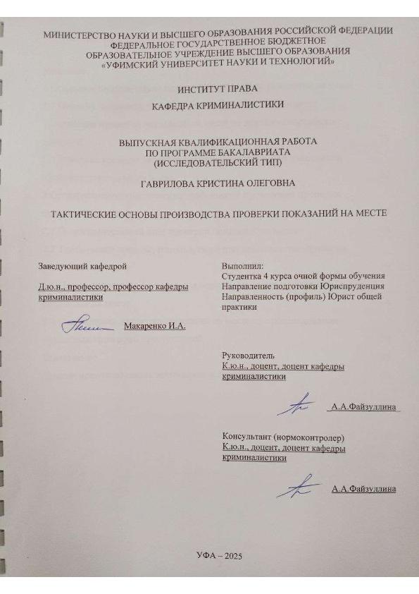 ВКР; бакалавриат; преступления; проверка показаний; тактические приемы