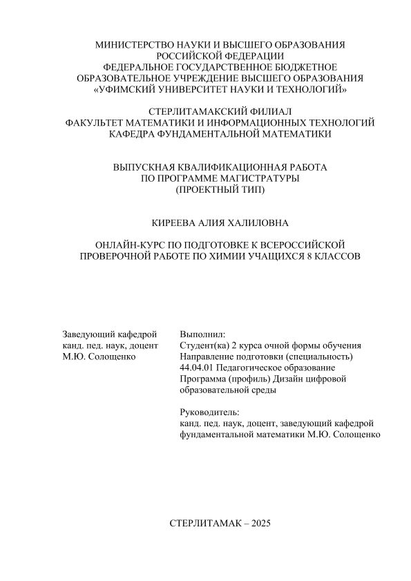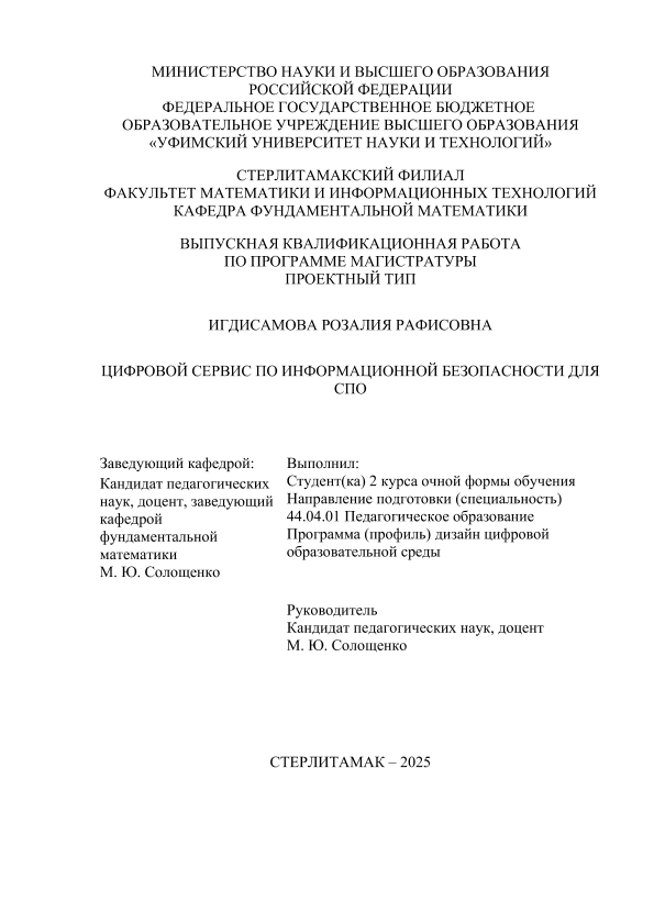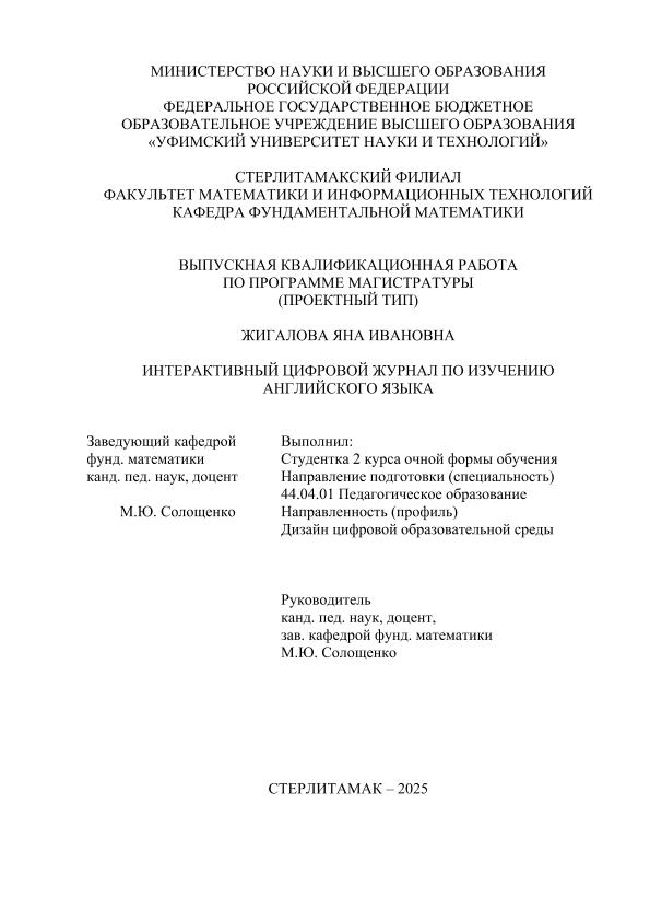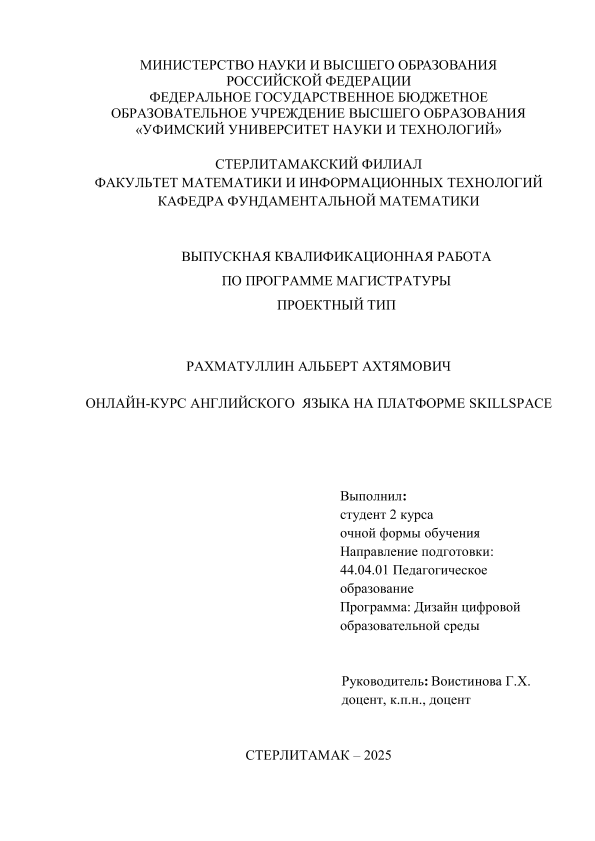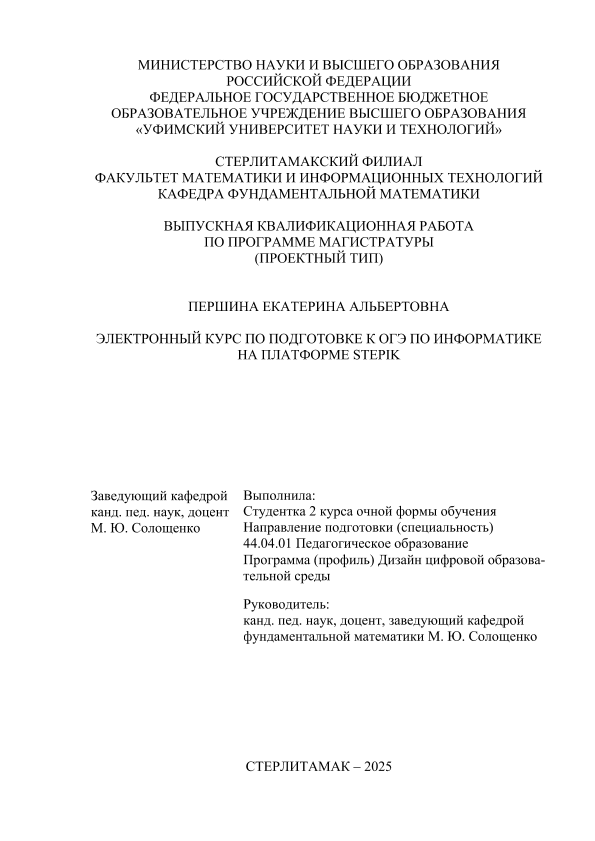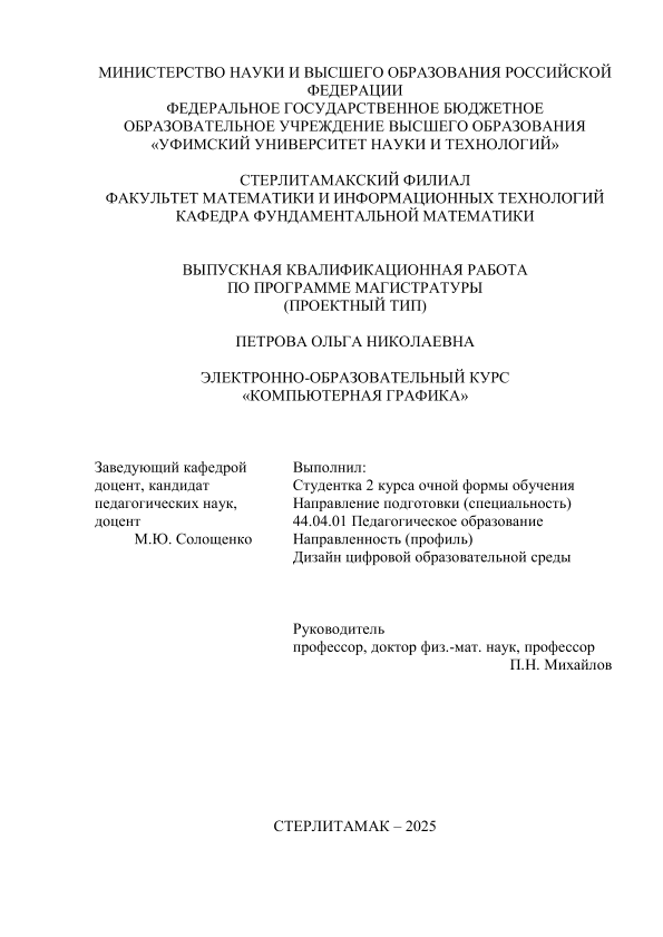 ВКР; магистратура; проектная работа; прикладная информатика; программирование; образовательная среда