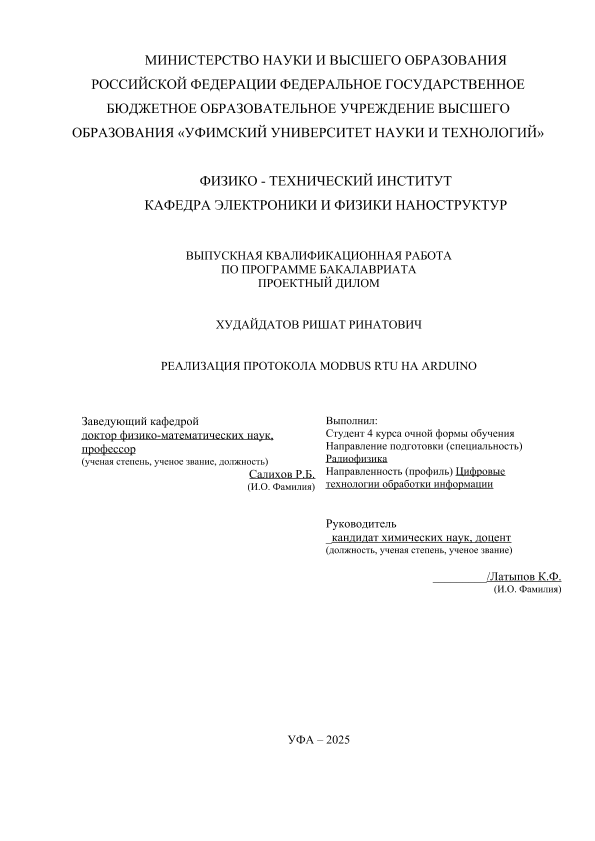 Subjects: бакалавриат; ВКР; единые системы управления; Modbus RTU; анализ структуры протокола; программные обеспечения