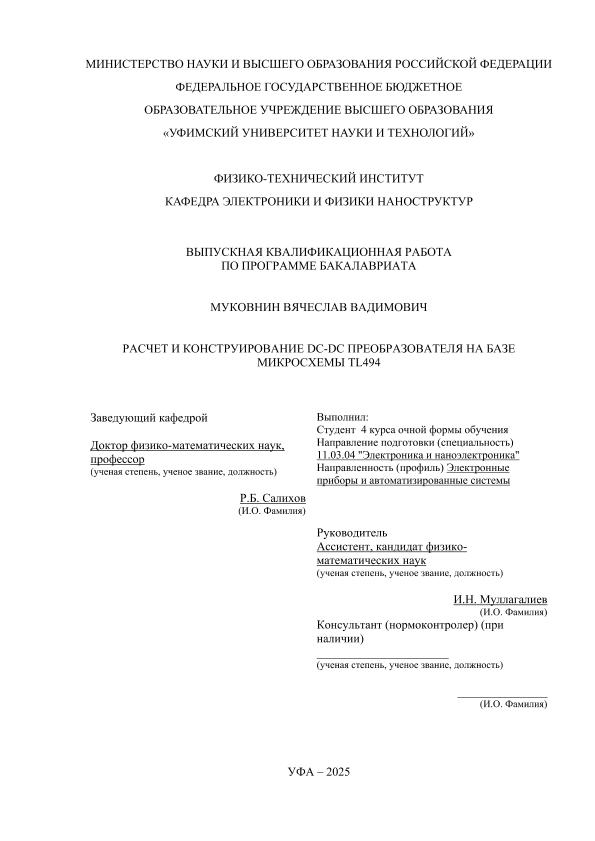 Subjects: бакалавриат; ВКР; преобразователи постоянного напряжения; проектирование схемы преобразователя; микросхемы; электронное устройство; тестирование DC-DC преобразователя