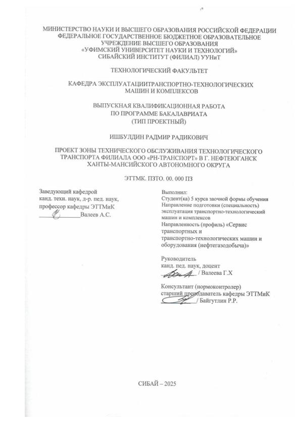 Эксплуатация транспортно-технологических машин и комплексов; бакалавриат; ВКР; ремонт; обслуживания; проект