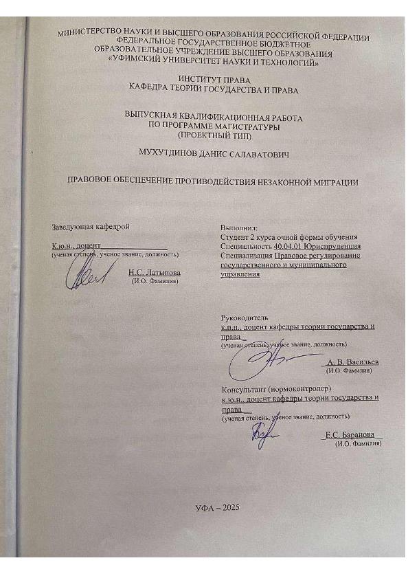 Subjects: ВКР; магистратура; незаконная миграция; правоприменительная практика; законодательные пробелы; проект закона