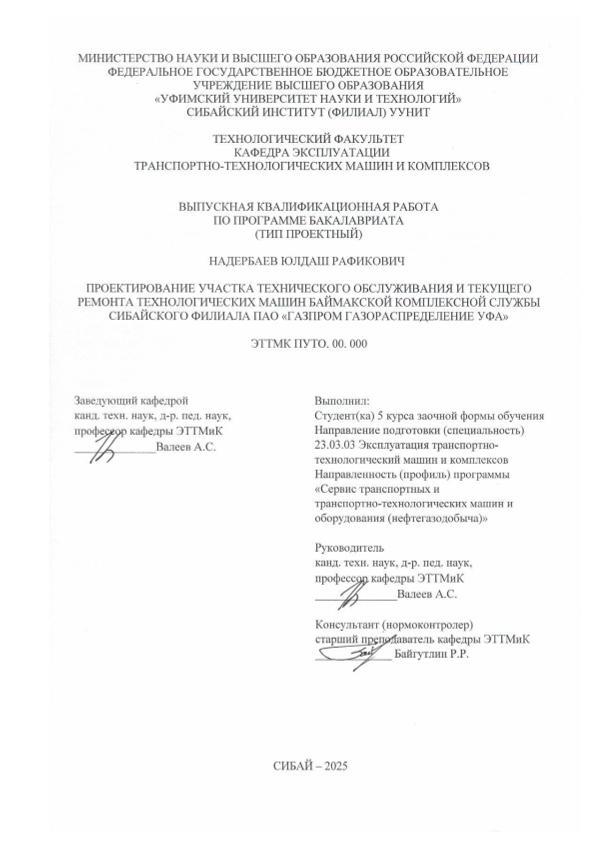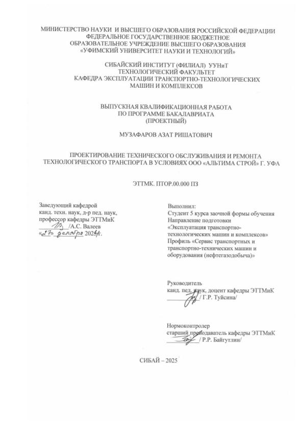 Эксплуатация транспортно-технологических машин и комплексов; бакалавриат; ВКР; провести; разработать; обосновать