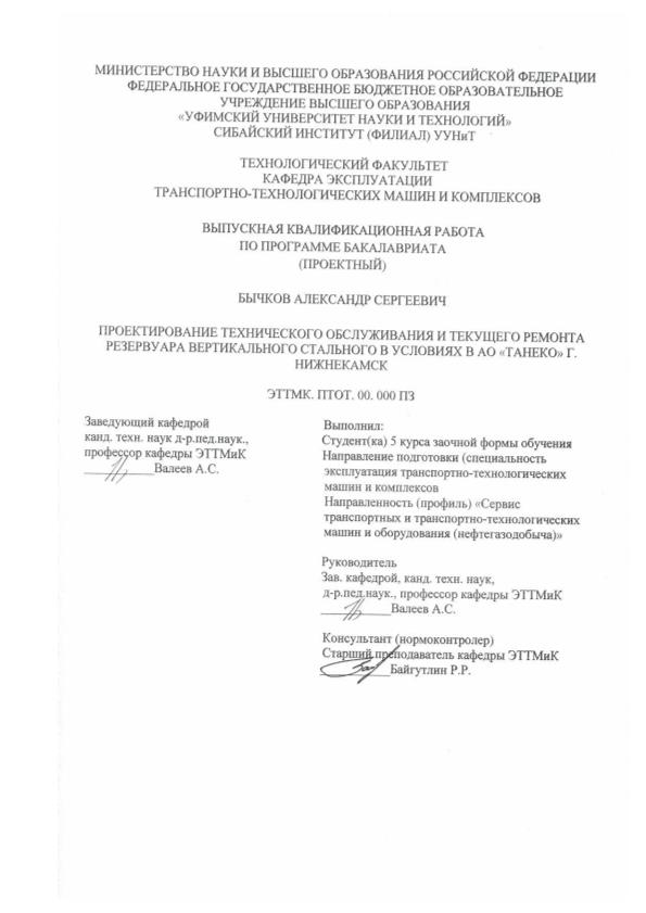 Subjects: Эксплуатация транспортно-технологических машин и комплексов; бакалавриат; ВКР; обслуживания; ремонта; резервуара