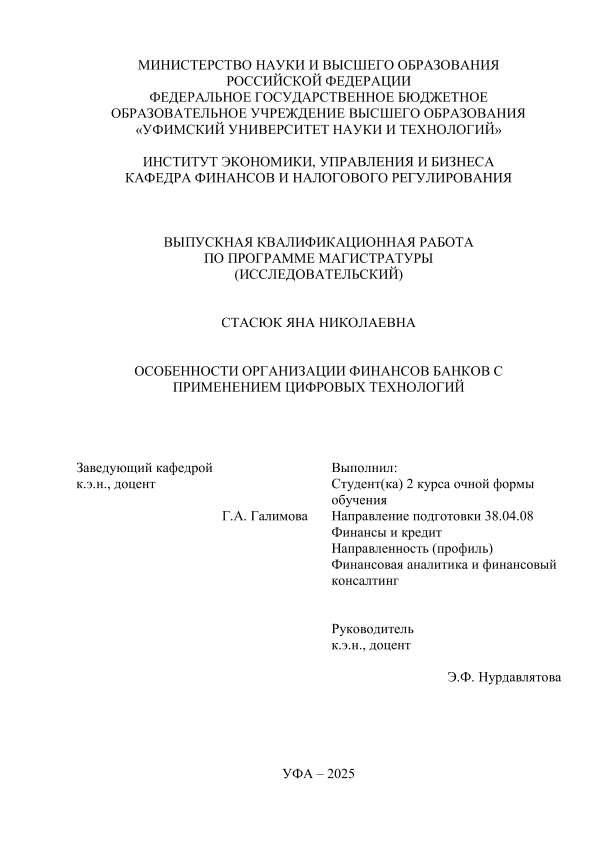 Subjects: ВКР; магистратура; цифровые технологии; деятельность коммерческих банков; финансовые патоки банков; риски цифровизации; эффективность финансового менеджмента