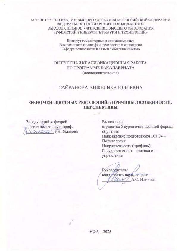 Subjects: бакалавриат; ВКР; «цветные революции»; политические перевороты; роль символики; медиатехнологии