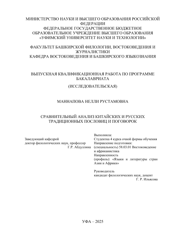 ВКР; бакалавриат; китайская культура; роль пословиц; поговорки; лингвистический анализ; русский язык
