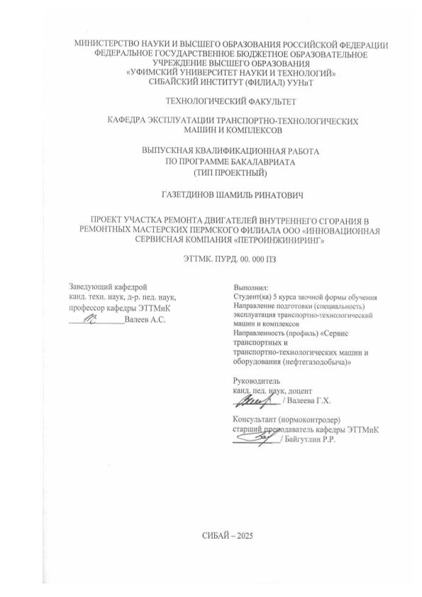 Subjects: Эксплуатация транспортно-технологических машин и комплексов; бакалавриат; ВКР; ремонт; двигатель; сгорания