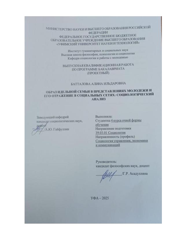 ВКР; бакалавриат; молодежь; семья; семейные ценности; социальные сети