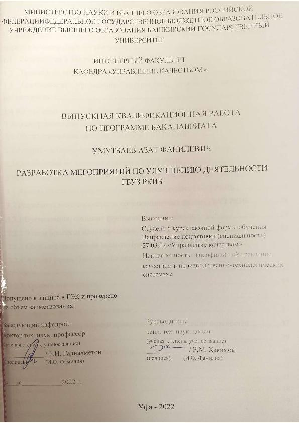 Башкирский государственный университет. Инженерный факультет. Кафедра управления качеством