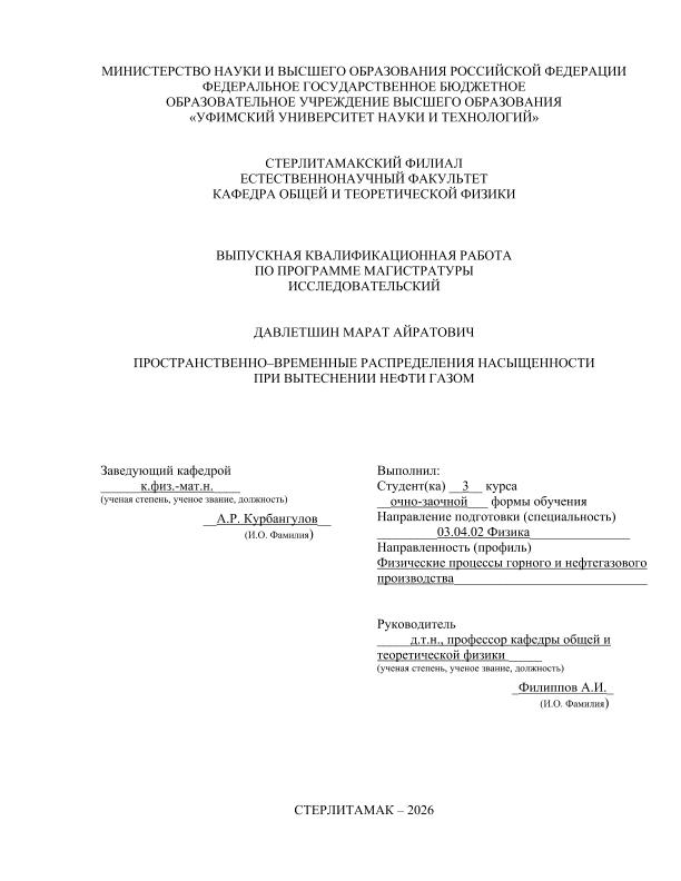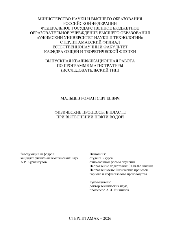 Физика; магистратура; ВКР (исследовательский тип); нефтяной пласт