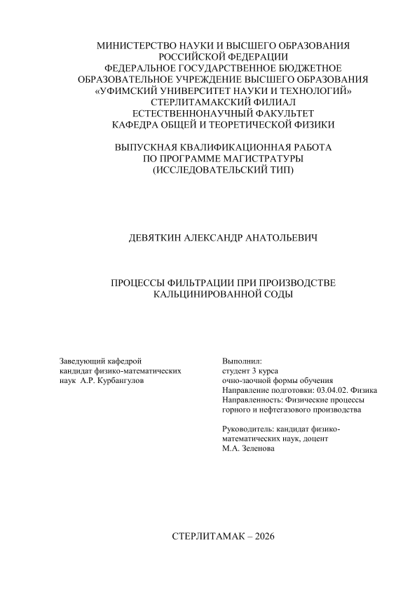 Физика; магистратура; ВКР (исследовательский тип); кальцинированная сода