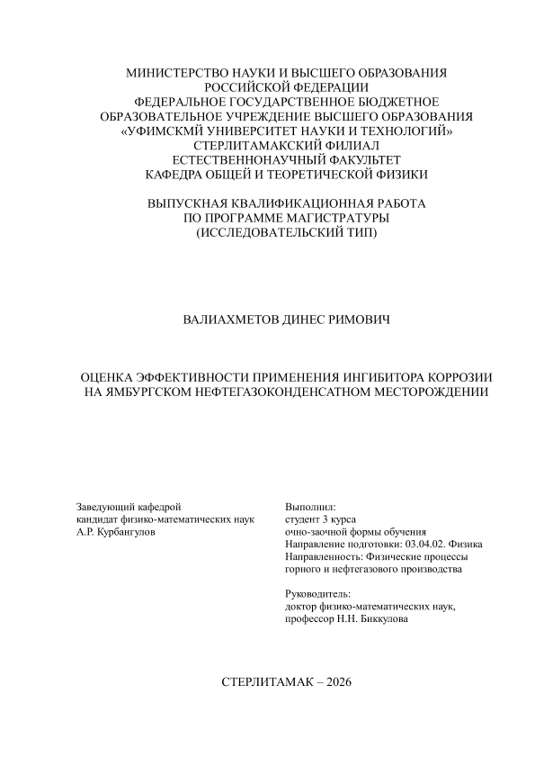 Физика; магистратура; ВКР (исследовательский тип); ингибитор коррозии