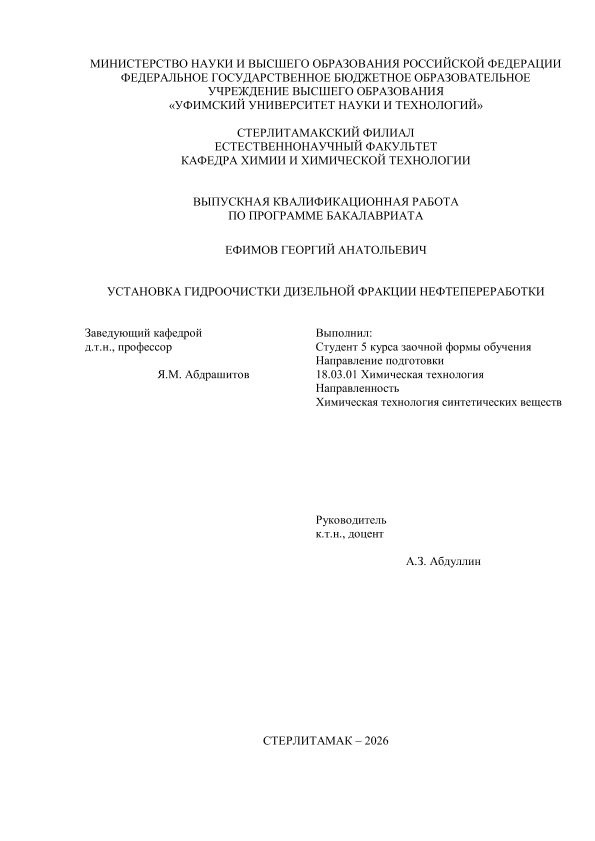 Химическая технология; бакалавриат; ВКР; нефтепереработка