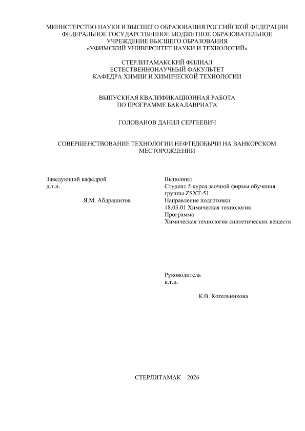 Химическая технология; бакалавриат; ВКР; нефтедобыча