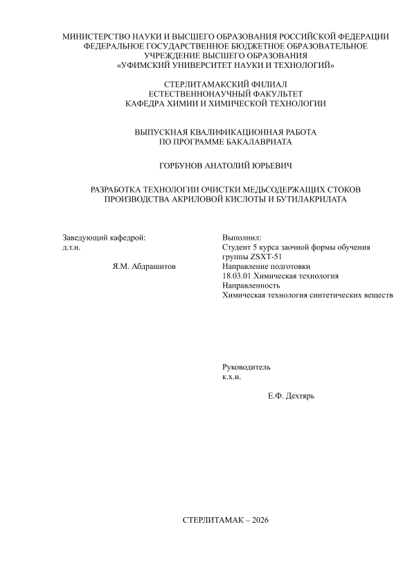 Химическая технология; бакалавриат; ВКР; акриловая кислота