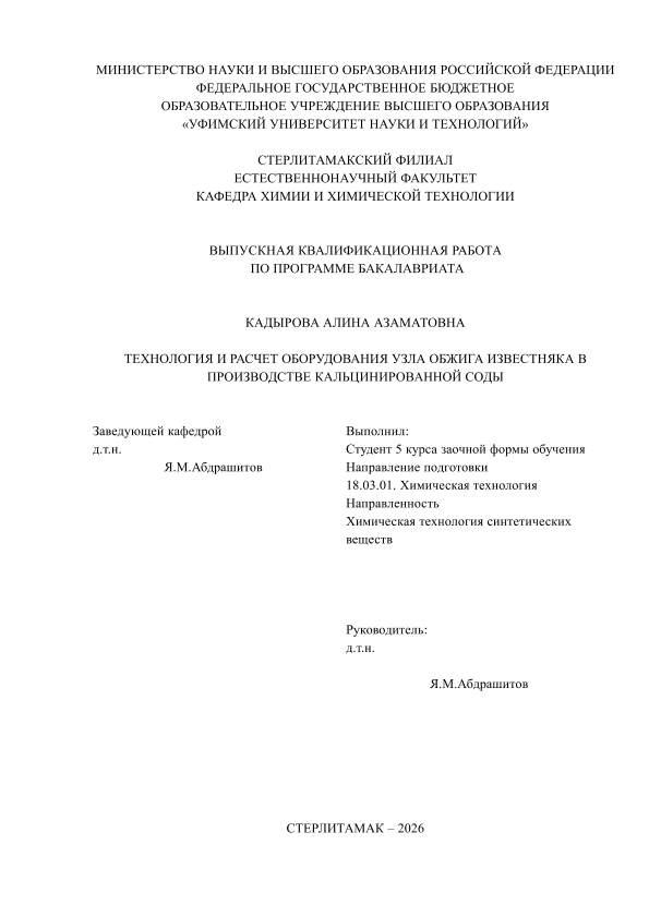 Химическая технология; бакалавриат; ВКР; кальцинированная сода