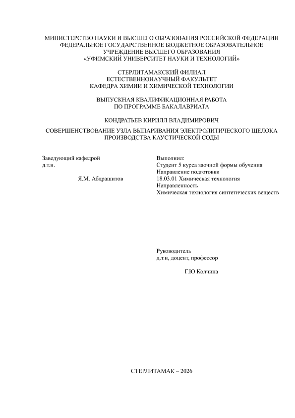 Химическая технология; бакалавриат; ВКР; каустическая сода