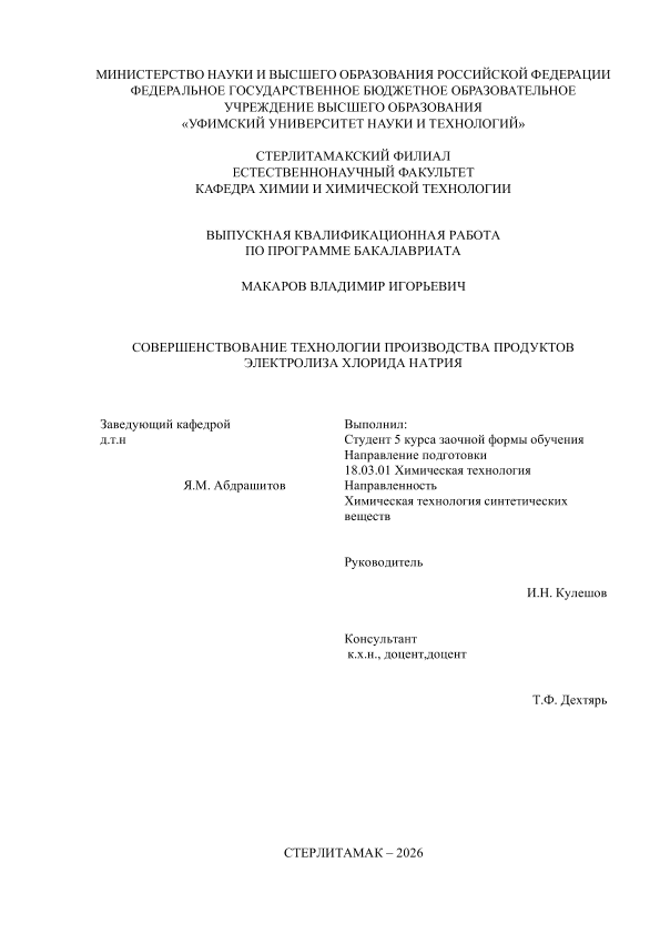 Химическая технология; бакалавриат; ВКР; хлорид натрия