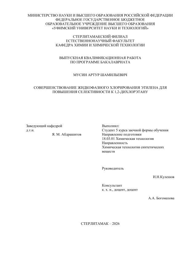 Химическая технология; бакалавриат; ВКР; 1,2-дихлорэтан