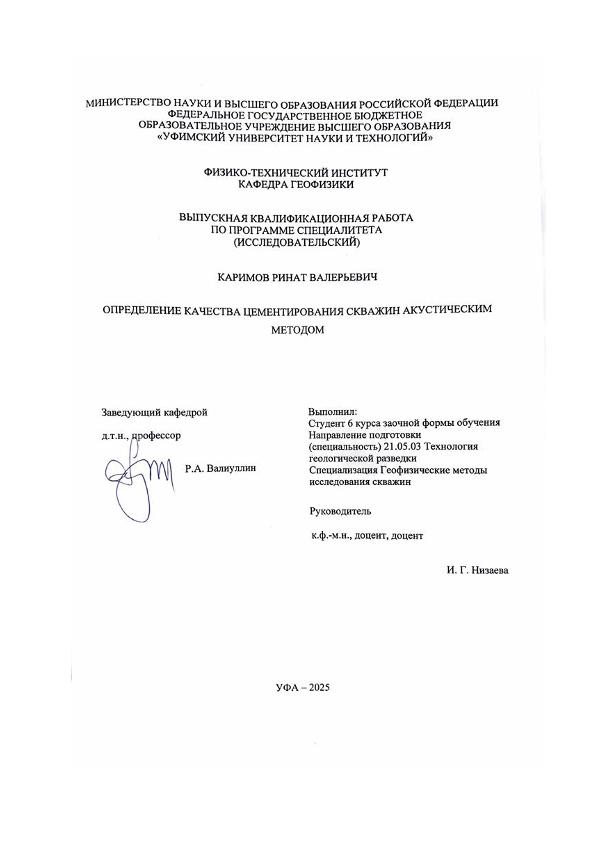Геофизика — Общие вопросы геофизики; Горное дело — Бурение; специалитет; ВКР; нефтяные скважины; цементирование скважин; промыслово-геофизические исследования; акустическая цементометрия