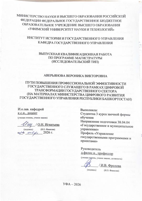 ВКР; магистратура; государственные служащие; профессиональная эффективность; цифровые технологии; цифровая трансформация