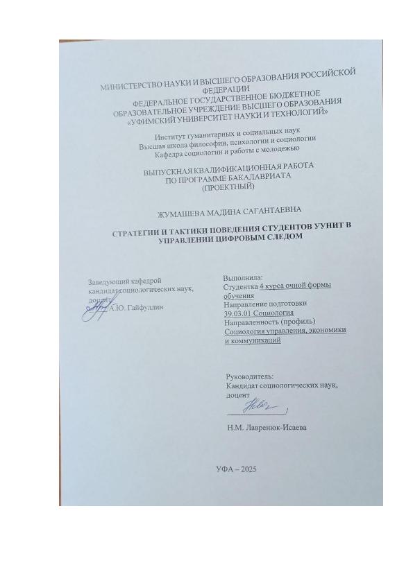 Organization: Уфимский университет науки и технологий (УУНиТ). Институт гуманитарных и социальных наук. Кафедра социологии и работы с молодежью