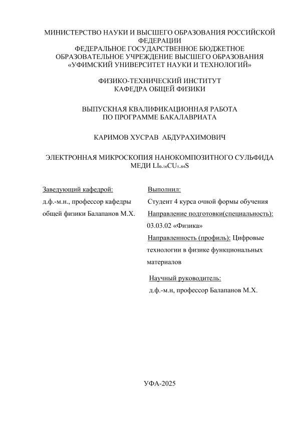 Subjects: ВКР; бакалавриат; нанокомпозитные материалы; ионная проводимость; нанокристаллические халькогениды меди; сканирующая электронная микроскопия; энергодисперсионная микроскопия
