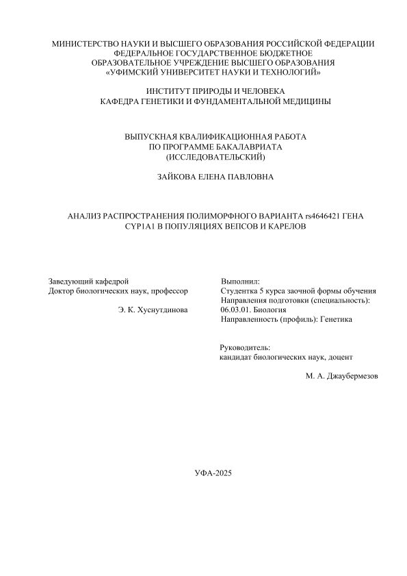 Subjects: ВКР; бакалавриат; вепсы; карелы; этническая характеристика; популяционно-генетические особенности; ген CYP1A1