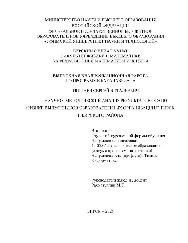 Образование. Педагогика — Теория и методика обучения; ВКР; бакалавриат; учебный процесс; ОГЭ; образовательные организаций; физика; система образования
