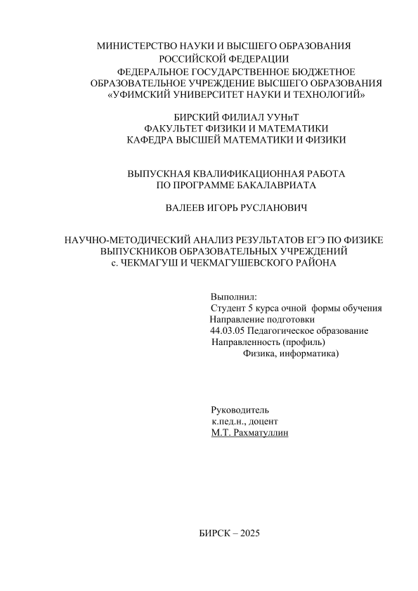 Образование. Педагогика — Теория и методика обучения; ВКР; бакалавриат; образовательные организации; ОГЭ; ЕГЭ; физика