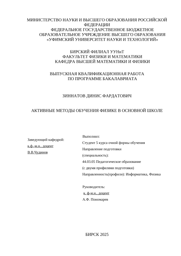 Образование. Педагогика — Теория и методика обучения; ВКР; бакалавриат; учебный процесс; образовательная система; методы обучения; физика