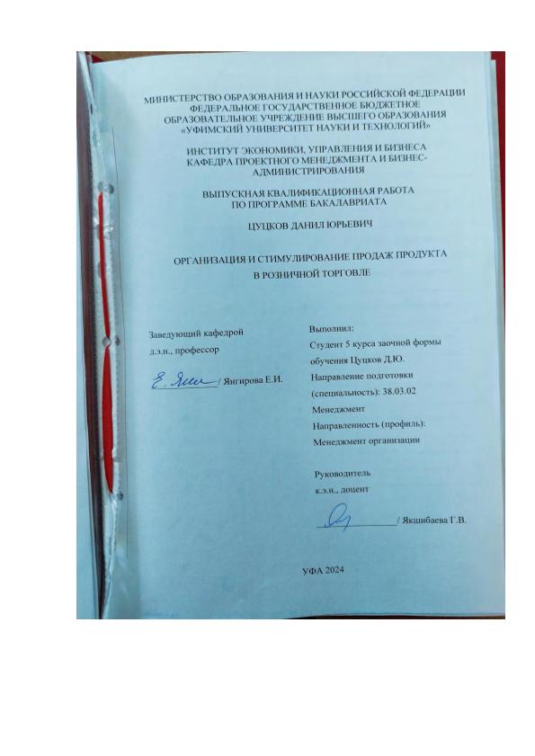ВКР; бакалавриат; розничная торговля; розничные продажи; стимулирование сбыта